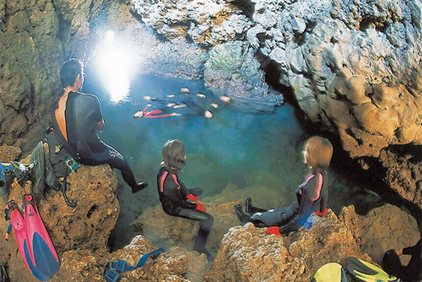 青い光に包まれた洞窟で、熱帯魚と触れ合える感動体験。ビギナーでも安心の青の洞窟シュノーケル。