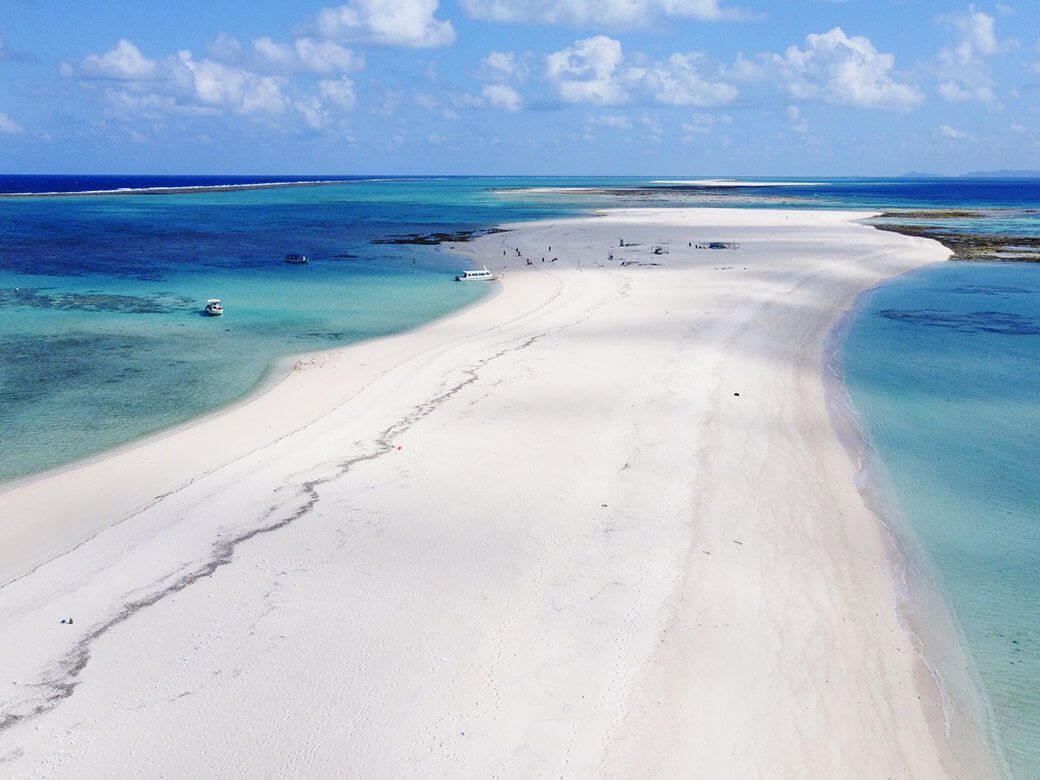 諸島内の有人島の中でもひときわ活気あるスポットとして知られ、真っ白なコーラルサンドと、どこまでも透明なブルーの対比が美しいその絶景の海は、ミシュラン・グリーンガイド・ジャポンで二つ星を獲得したほどです。