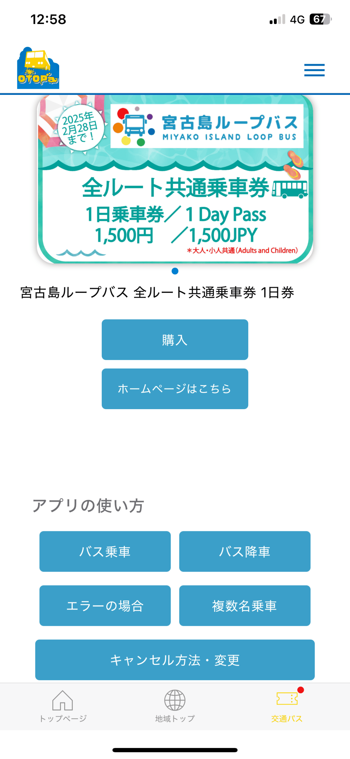 STEP.2 手順に従って、アプリの「TOPページ」から「宮古島ループバス」を選択