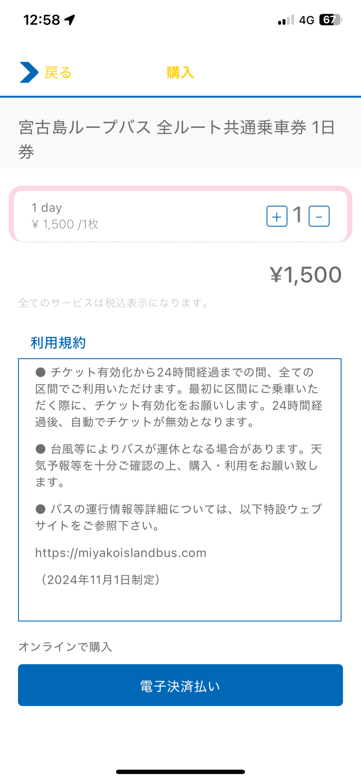 OTOPaで購入できる券種と金額:1日乗車券(24時間)/1,500円