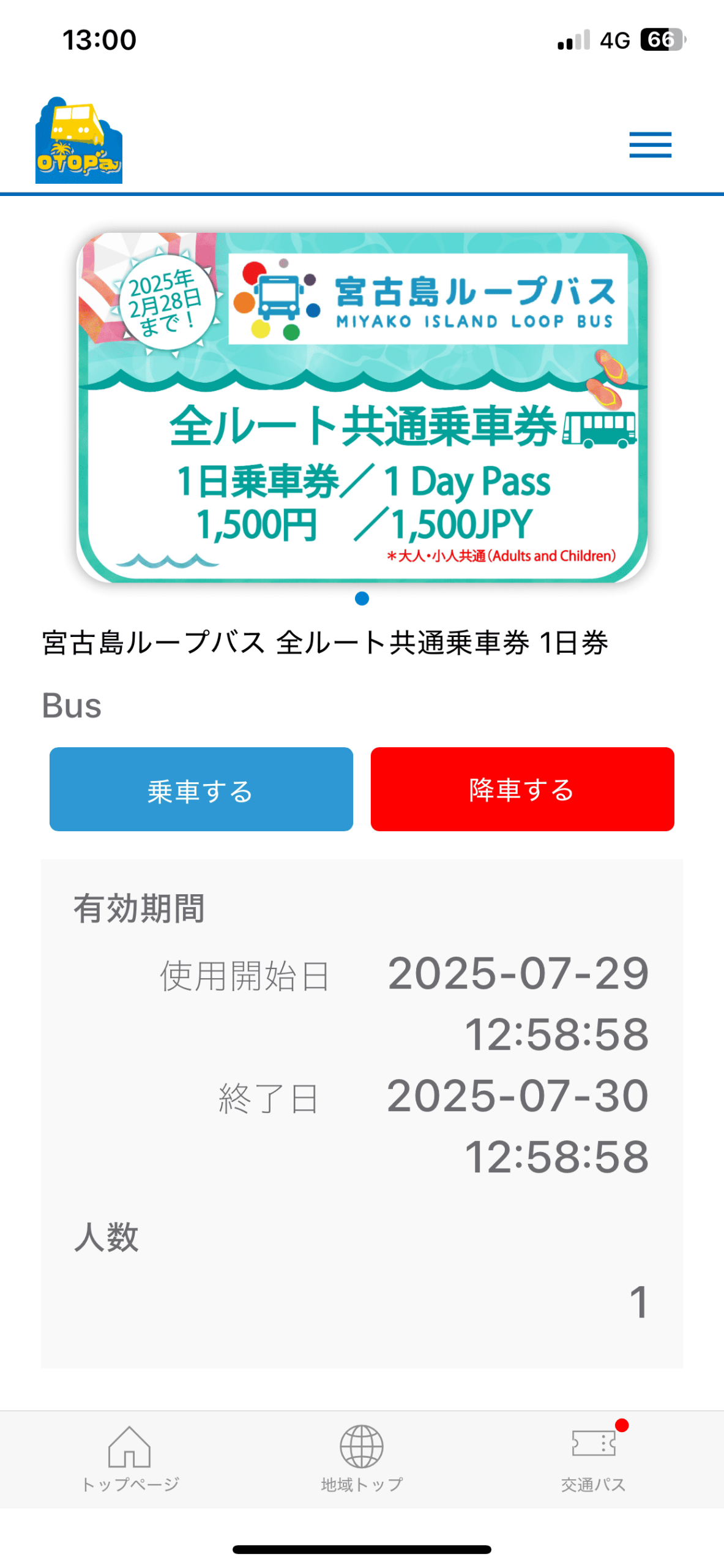 乗り方:今回はアプリ「OTOPa(オトパ)」を利用して乗ったので、