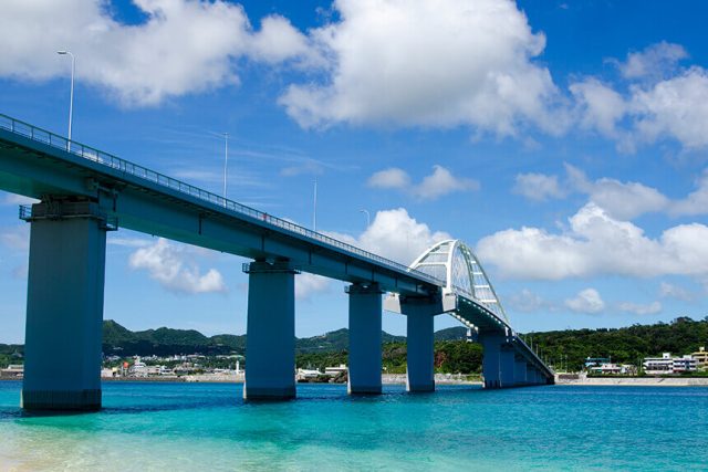透明度の高い海が魅力の離島。橋でつながっているのでアクセスも簡単です。