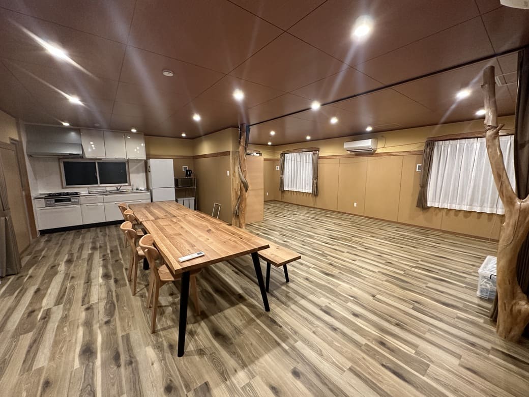 バンガローの横には、炊事場も。お肉やお野菜を持ち寄れば、みんなでBBQが楽しめます。キャンプ用品や家電、BBQのレンタルもあり、初心者でも安心して自然体験ができます。