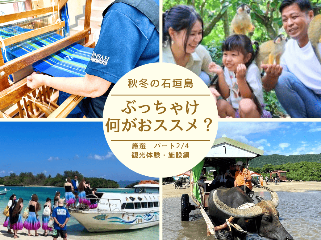 【全4編:2/4~厳選の観光体験・施設編~】沖縄在住・Okinawa Traveler編集部のおススメする「秋冬の石垣の過ごし方」をご紹介!本編では主におススメの観光体験や施設を紹介!どの旅行でも雨など予期せぬ理由で、変更することが良くありますよね・・・。そんな方にも安心!全4編では、実際に旅のプロが独自に調べ、おススメ施設とそのポイントをわかりやすく紹介しちゃいます!
