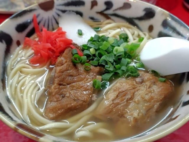 沖縄そば金匠では、豚骨とかつお、2種類の出汁から選べるそばをご用意しています。